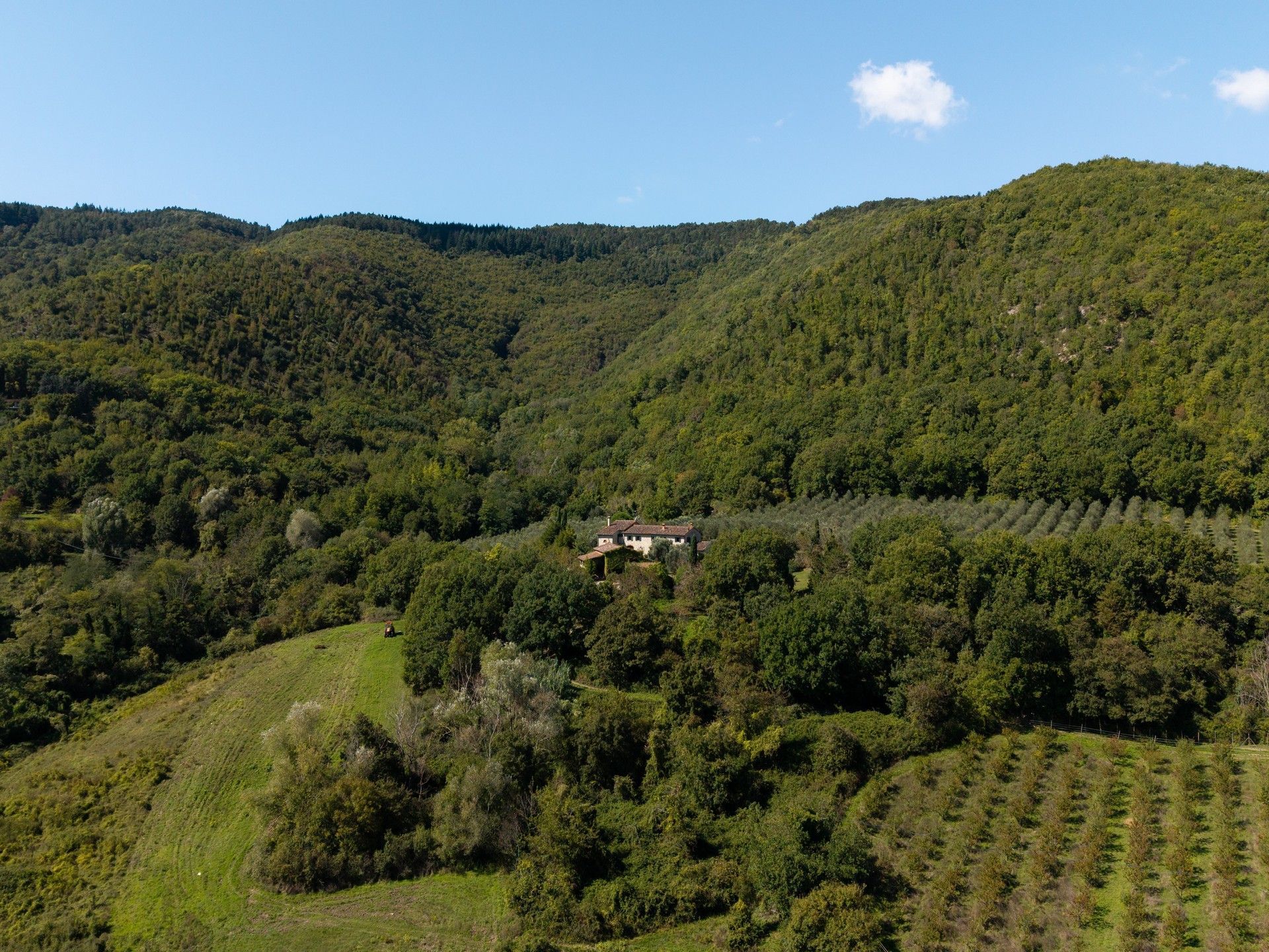 +39 055 2654579An ancient farmhouse with arches and a charming annex, nestled in approximately 35 hectares of olive groves, an orchard, and woodland with a private spring. Spacious and authentic interiors, a rural atmosphere, natural balance, and unobstructed views of the landscape.