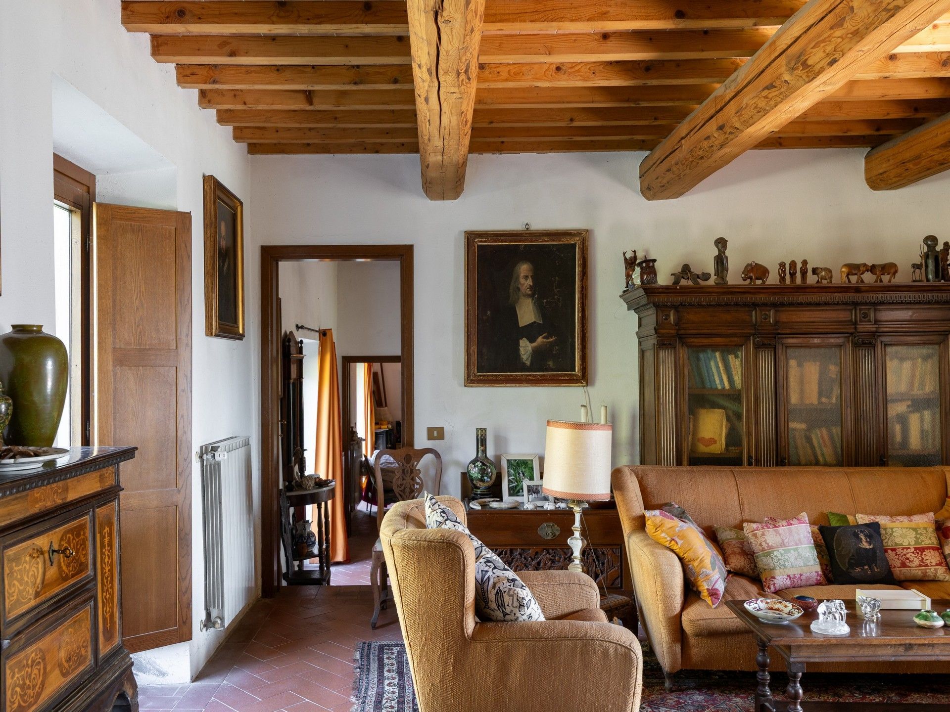Upon entering the villa, you immediately sense the continuity between inside and out. The house comprises an entrance hall leading to the dining room, followed by a large living room and a second living room with bathroom, perfect as a study or family space. Part of the building still retains its agricultural soul: a large room now used as a storage area, easily convertible.