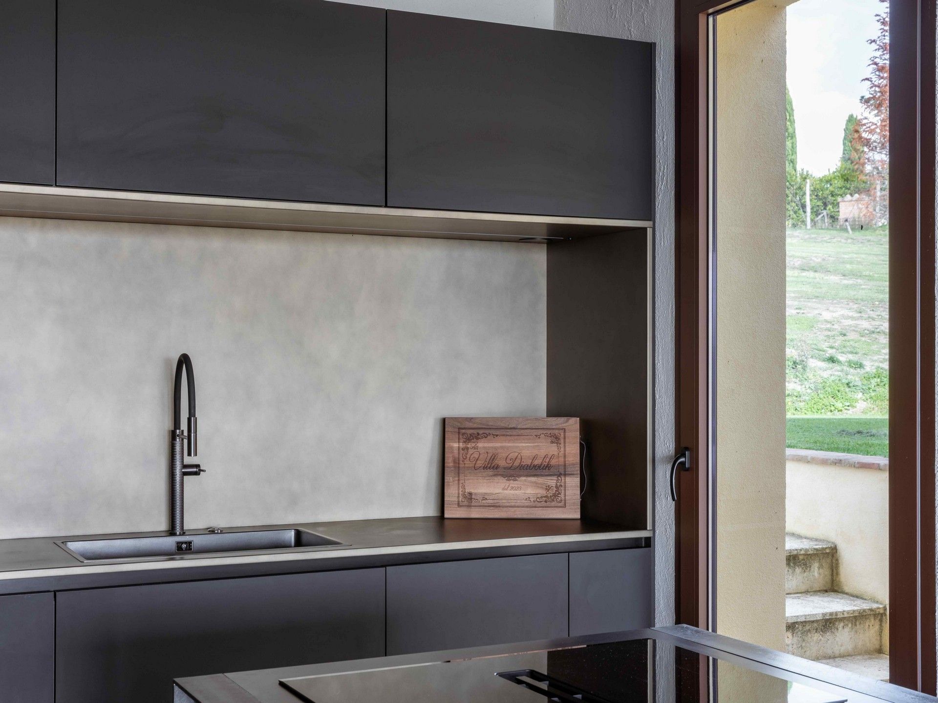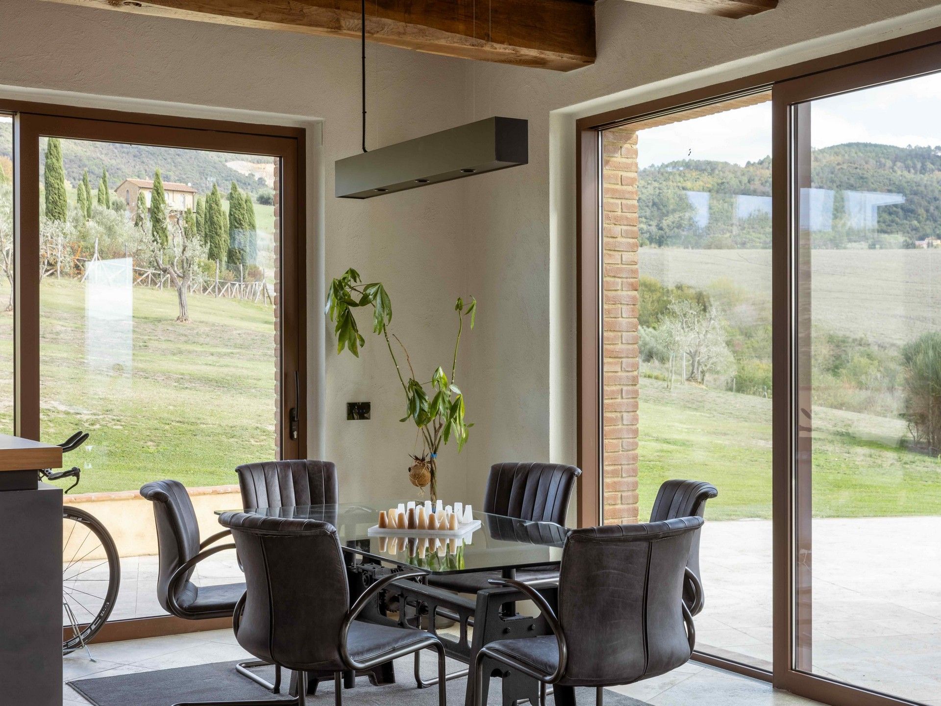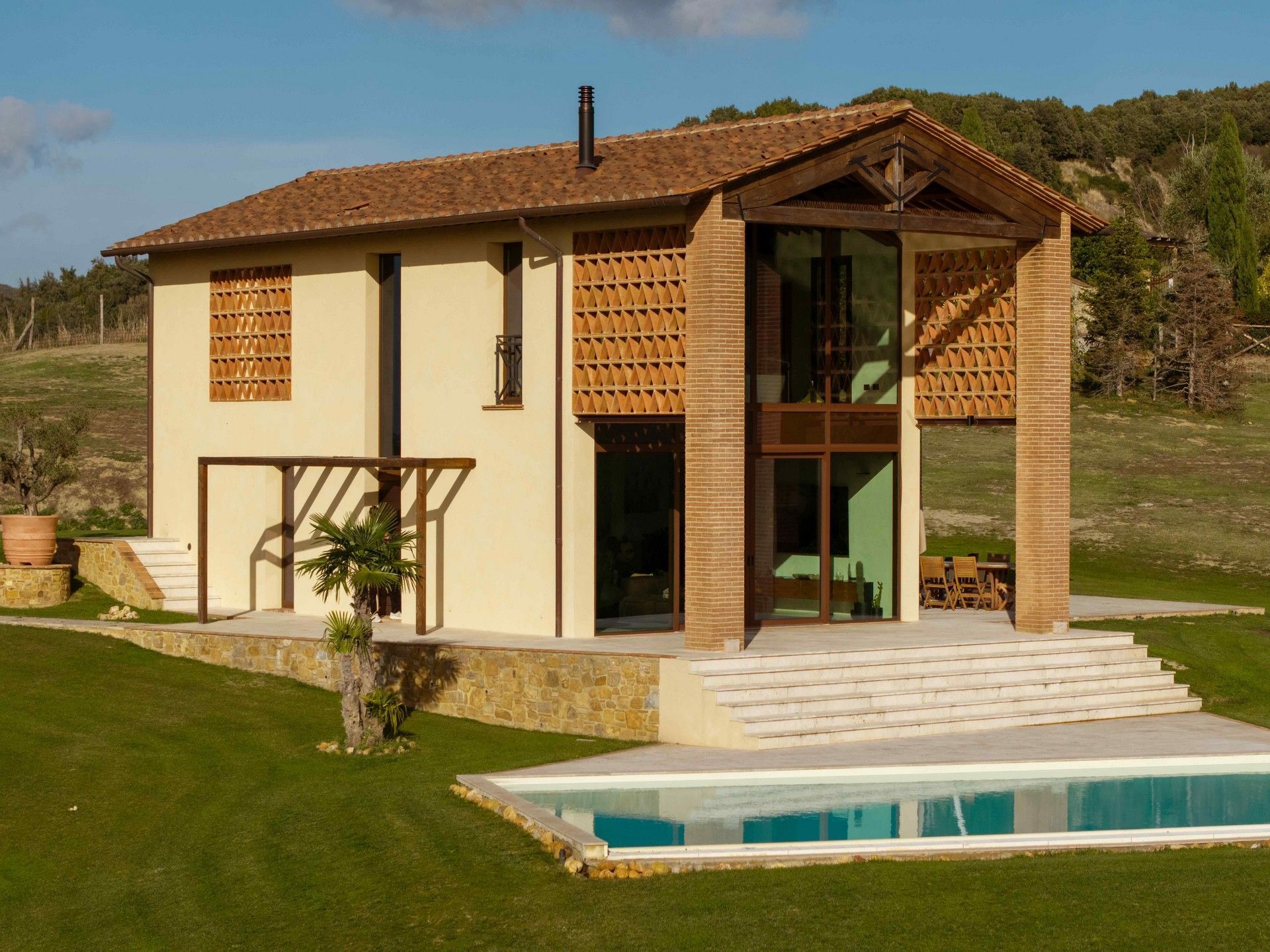 This house is not a traditional farmhouse, not a villa in the classic sense, not a restored rustic house like so many others. It is something else entirely: a building that draws on rural Tuscan heritage, yet reinterprets it with clear dimensions, authentic materials, and a precise sense of silence.