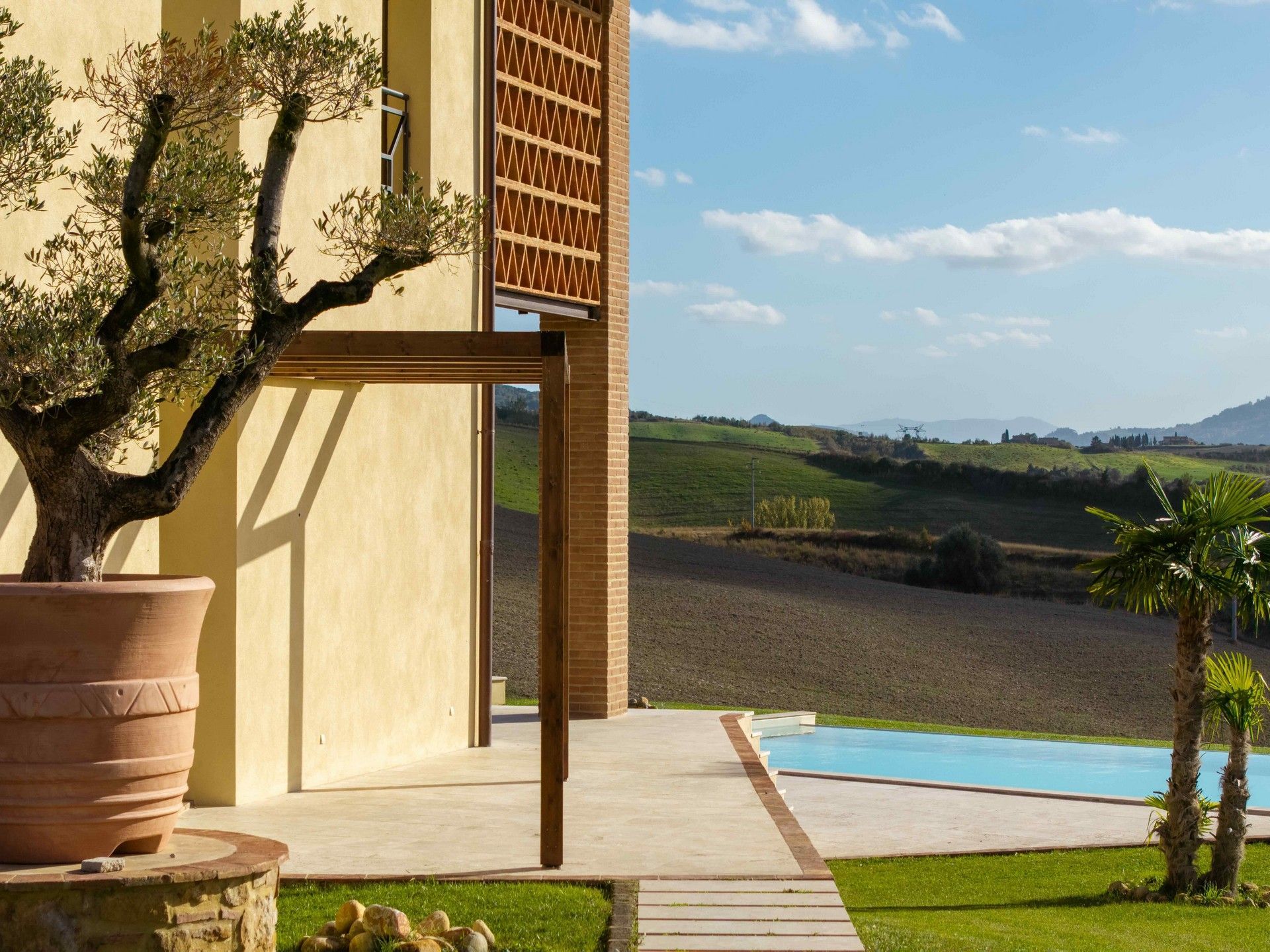 +39 055 2654579A contemporary barn with a private view of Volterra. Essential spaces, an infinity pool, and a hectare of tranquility. A retreat that feels like a private suite immersed in the Tuscan countryside.
