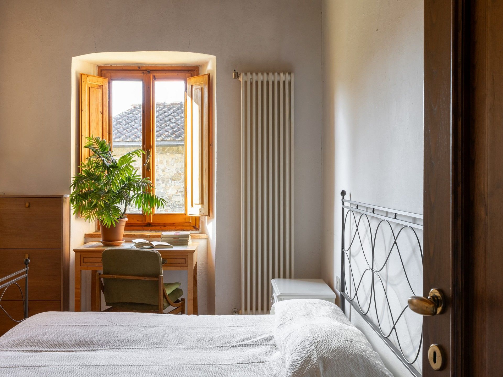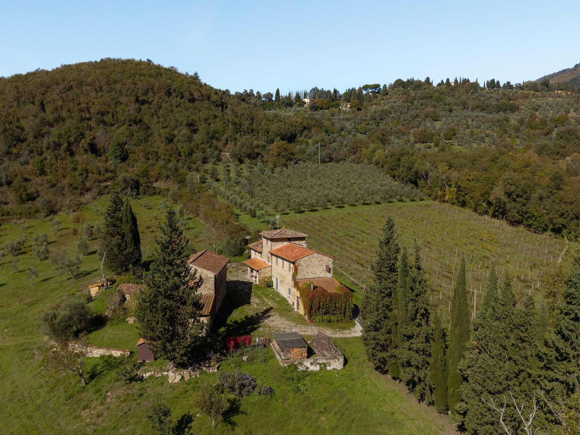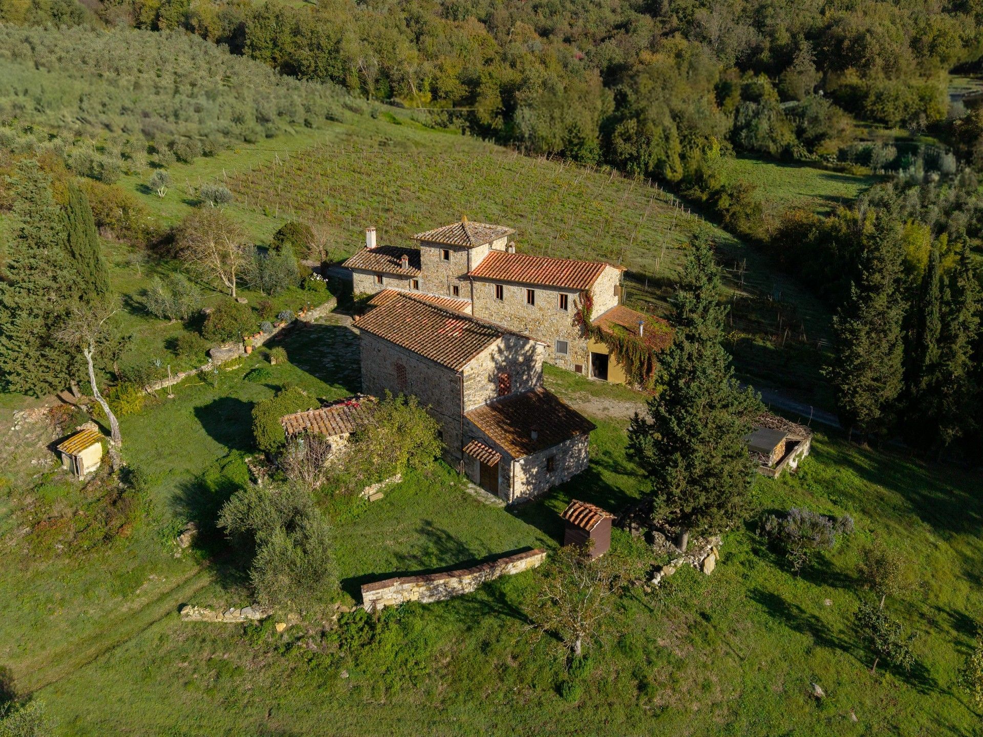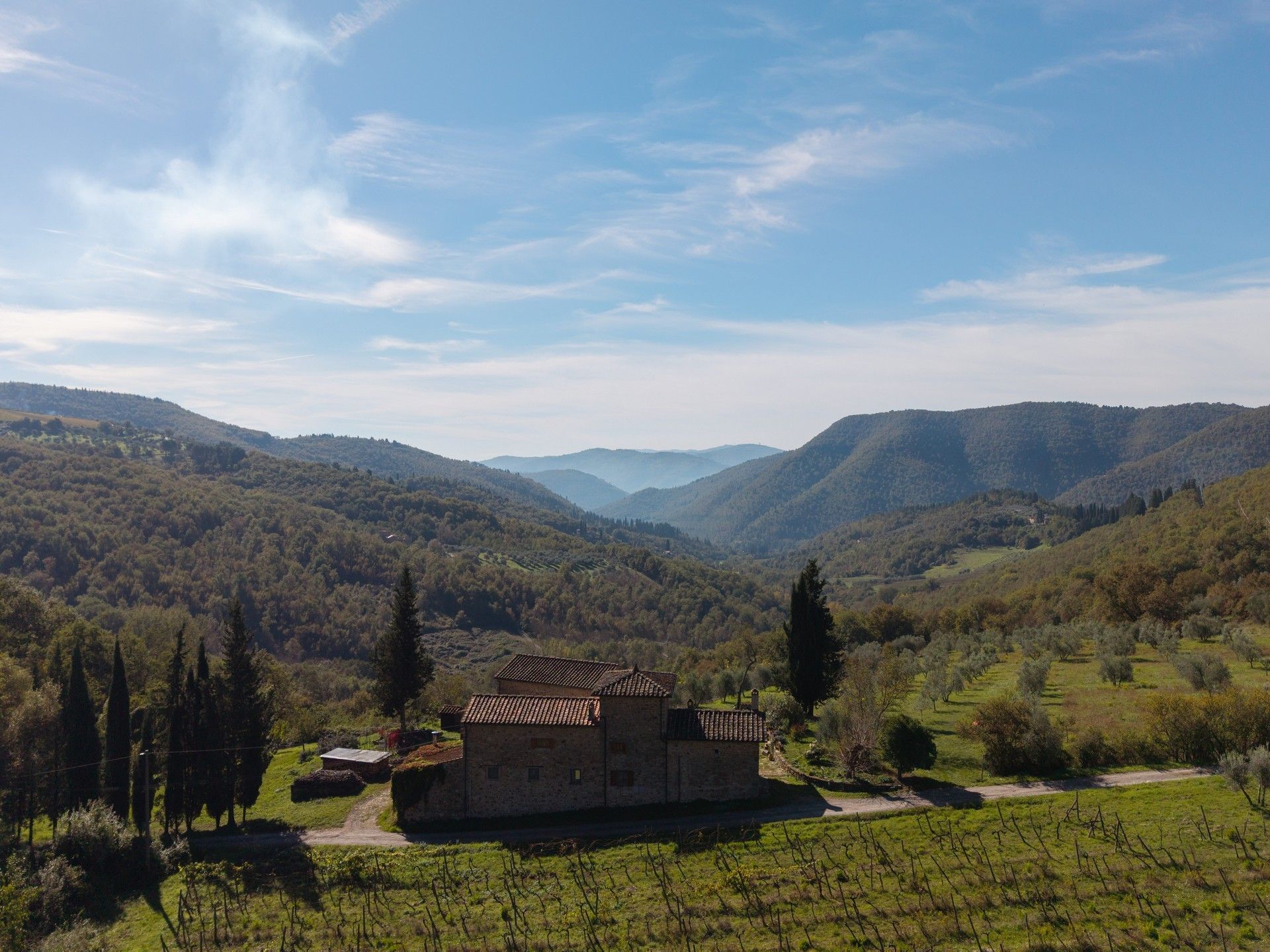Intorno, la terra è viva e ben curata: un oliveto che permette di produrre un proprio olio e un piccolo vigneto privato, perfetto per chi sogna di vinificare un Chianti in quantità limitata ma personale. Un insieme raccolto, armonioso, autentico — dove la bellezza nasce dal paesaggio e dal tempo.