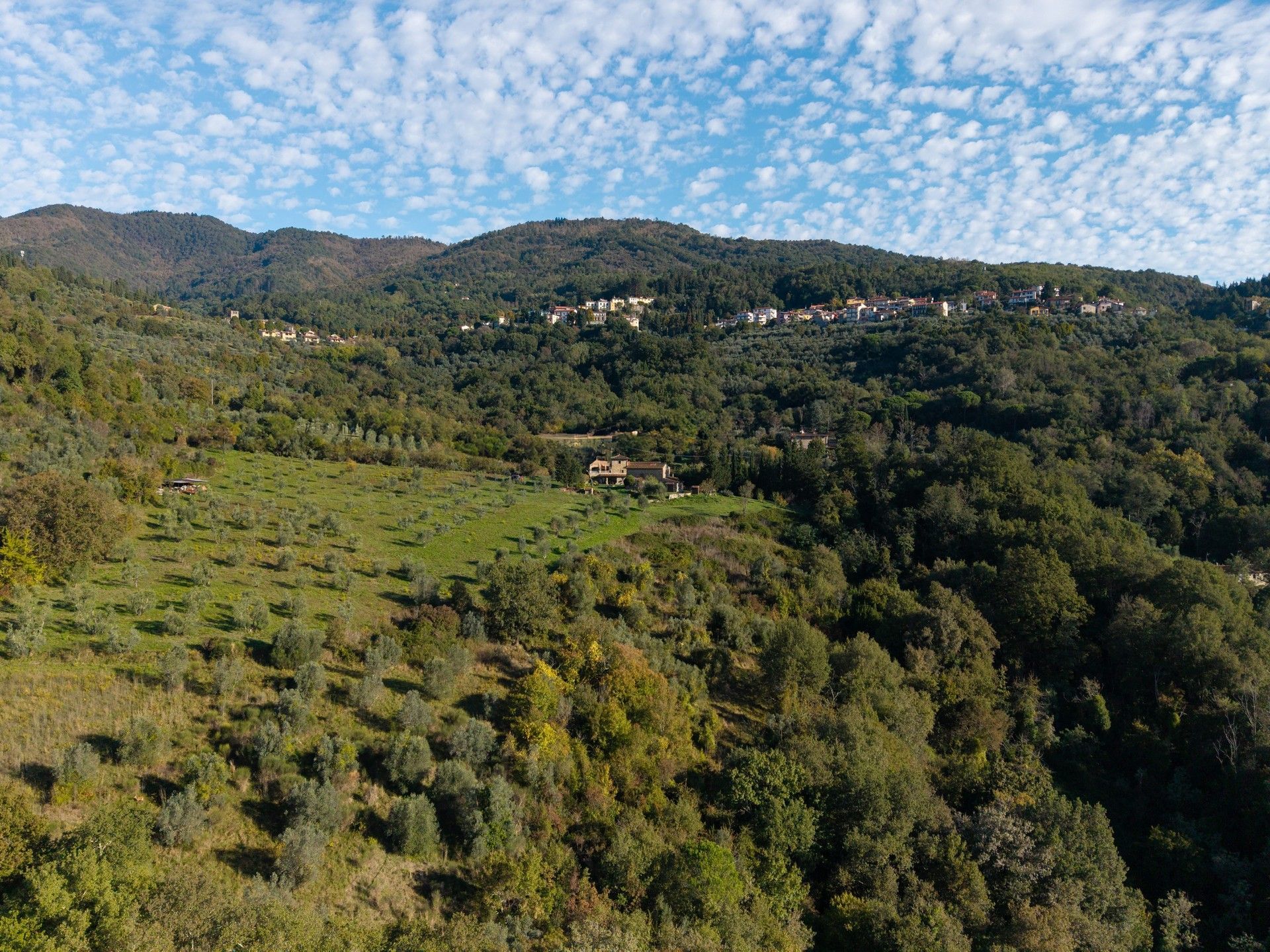 Tra le colline che guardano Firenze da nord-est, Respiro Toscano sorge in posizione alta e panoramica, affacciandosi su una valle profonda e scenografica che si apre tra oliveti e boschi.